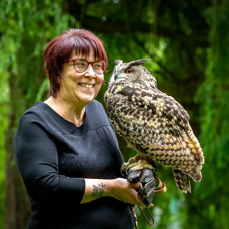 einen spannenden Einblick in das Leben der Jäger der Lüfte. Es besteht die Möglichkeit, sich mit einer Eule fotografieren zu lassen. Außerdem gibt es Bastelaktionen und die Möglichkeit, einen Kürbis zu gestalten - nicht unbedingt als Eule, aber dennoch schön